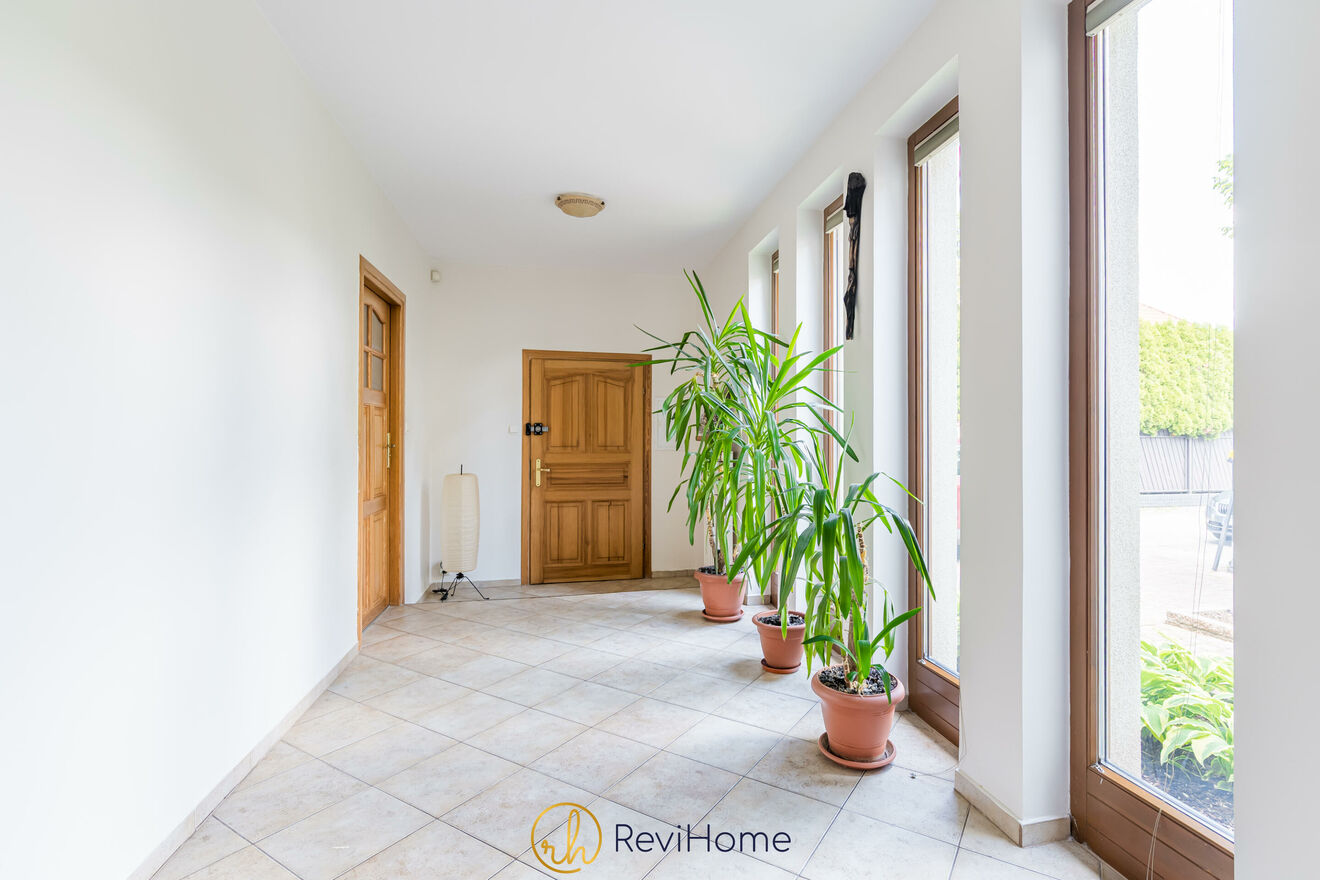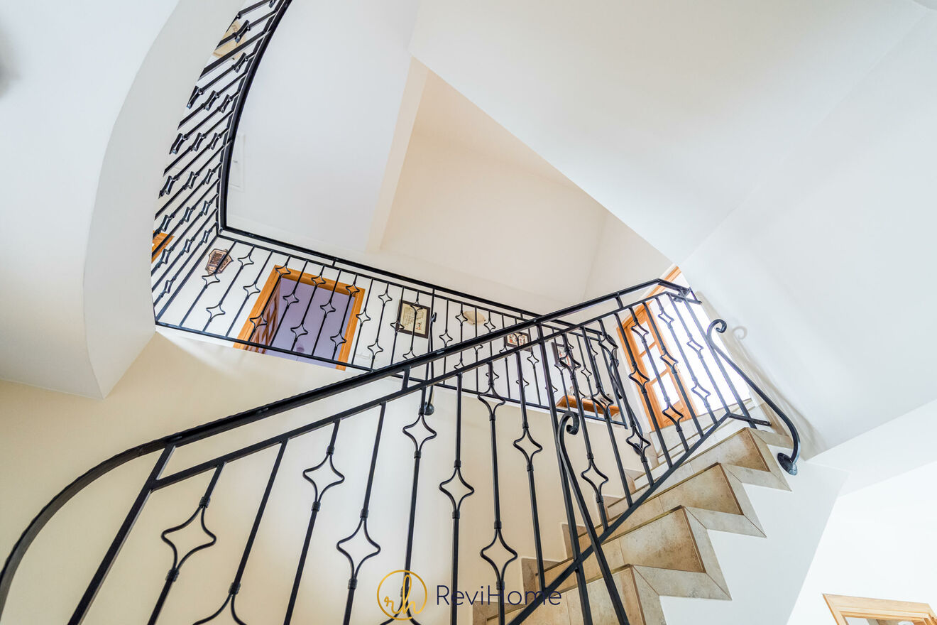 Wnętrze domu wykończone z wielką dbałością o szczegóły i utrzymane w rustykalnym stylu. Dużo przestrzeni i doskonałe doświetlenie wnętrz dzięki dużym oknom. Jasne elementy wykończenia i detale podkreślają jego nietuzinkowość. Wszystko zaprojektowano tu tak, aby każdy z domowników mógł cieszyć się prywatnością.