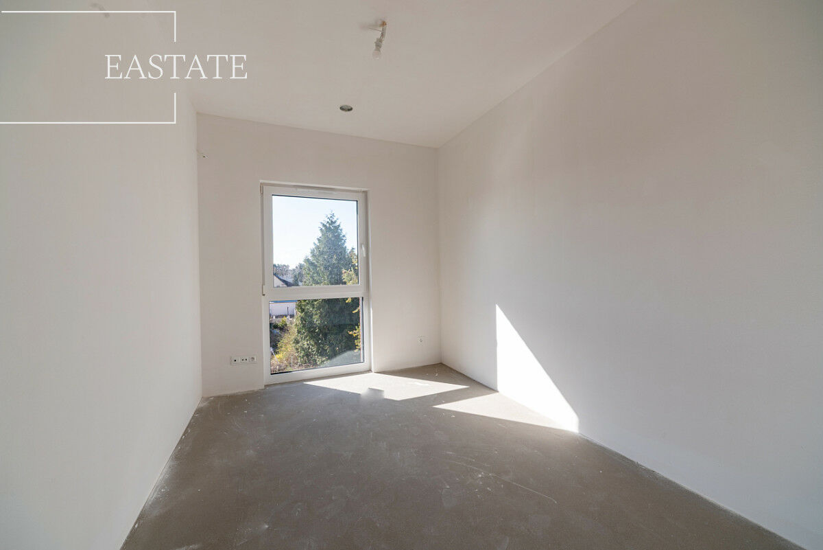 Piętro 1: na piętrze znajduje się główna sypialnia o powierzchni 17 m². Dodatkowo do dyspozycji są dwa pokoje - 9 m² oraz 5 m² (pełniący funkcję garderoby z oknem lub mogący służyć jako gabinet) - a także przestronna łazienka o powierzchni 8 m².