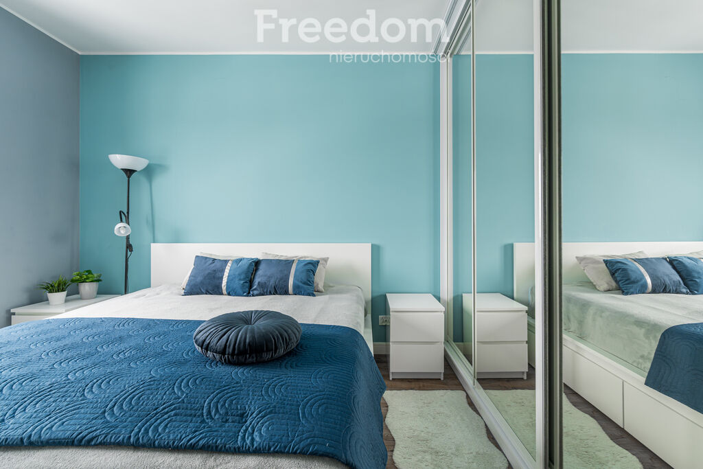 szafą w zabudowie z lustrzanymi drzwiami. Mieści pełnowymiarowe