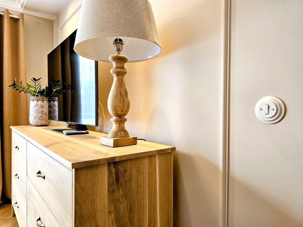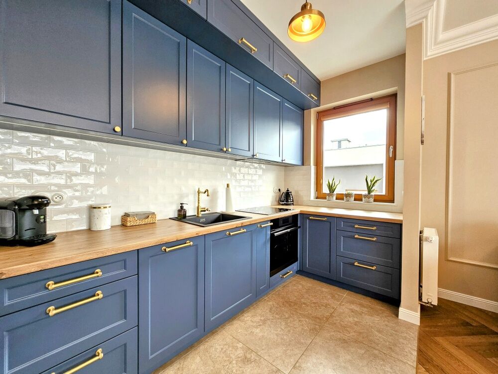 Do wykończenia mieszkania zostały użyte wysokiej klasy materiały, np. meble na wymiar- bardzo przemyślany układ, podłoga z deski klejonej dębowej, szafy w zabudowie, mosiężna elegancko prezentująca się armatura, stylowa porcelana łazienkowa, włączniki i kontakty porcelanowe, drzwi z zamkami magnetycznymi, dębowe meble wystrojowe.